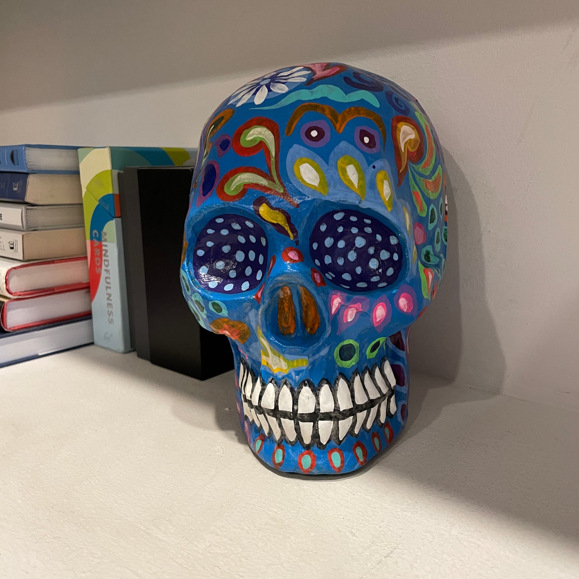 This "Calavera" or skull is one of our best-selling items for Halloween and Dia De Muertos, light and easy to place on any surface.