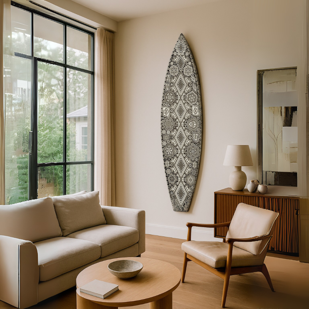 Experience the epitome of joy, adventure, and vibrant energy with our Huichol beaded surfboard. Handcrafted with meticulous care, each surfboard seamlessly blends the thrill of surfing with the cultural richness of Huichol beading. Elevate your space with the most incredible piece that radiates positivity and adds a touch of unparalleled beauty to any environment.