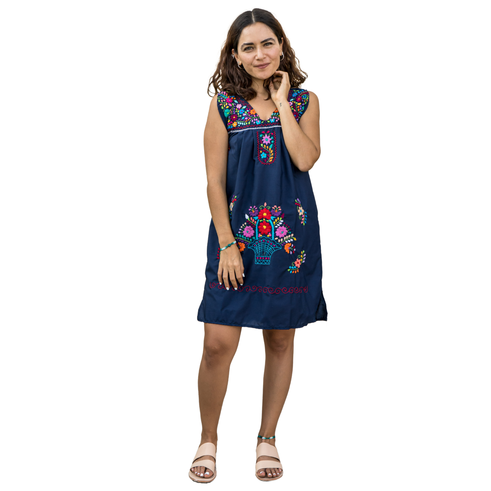 This incredibly fresh and light dress is amazing for spring and summer, easily slips on for a casual day look or can even be dressed up with a pair of heels for a fun night out. The one-of-a-kind hand embroidered detail adds the perfect hint of Mexico.