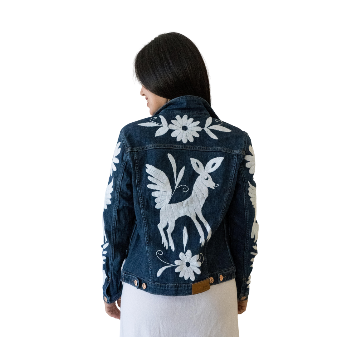 Embrace the artistry of Otomi embroidery on a classic denim jacket, where each stitch tells a story. Unlike traditional pieces, the embroidery is crafted directly onto the jacket, creating a truly unique fusion of heritage and everyday style. Featuring the vibrant animal, floral, and geometric motifs characteristic of Otomi art, this lightweight jacket is the perfect fresh layer for autumn days, adding warmth and rich storytelling to your wardrobe.