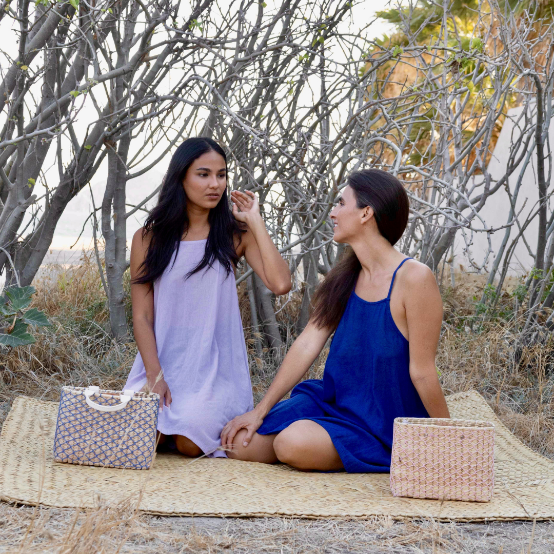 It can be worn loosely for a relaxed look at the beach, a picnic, or to enjoy an afternoon walk. Or with the strap at the waist for a night out or for a daytime event while preserving the freshness of your style.