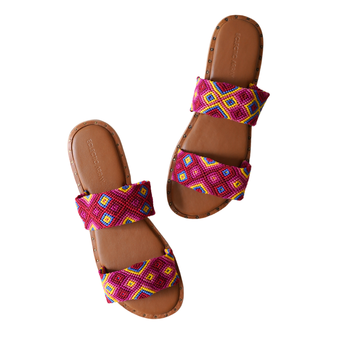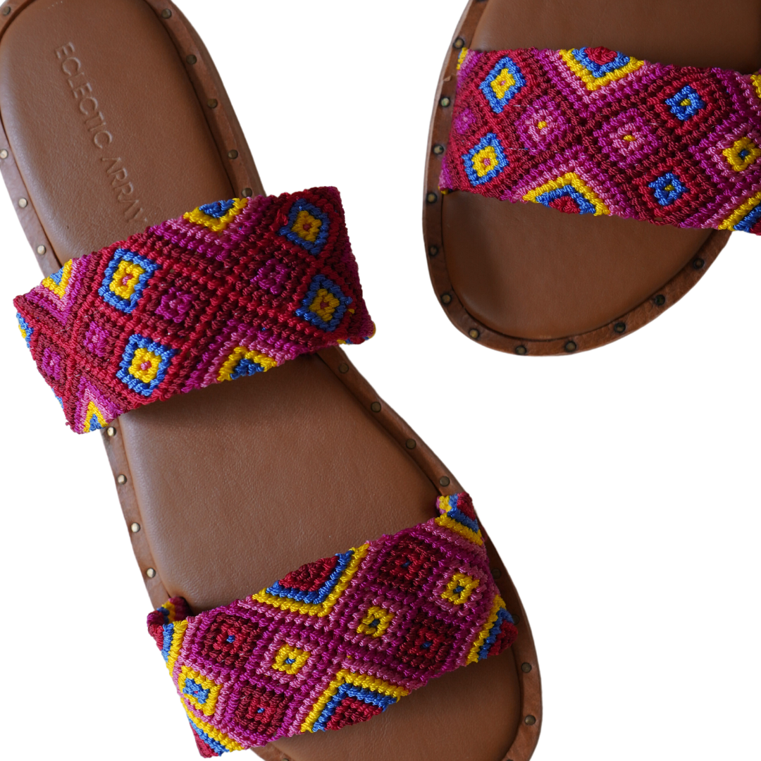 Slide into these versatile sandals, featuring a cushioned leather insole with beautiful and unique handwoven straps.