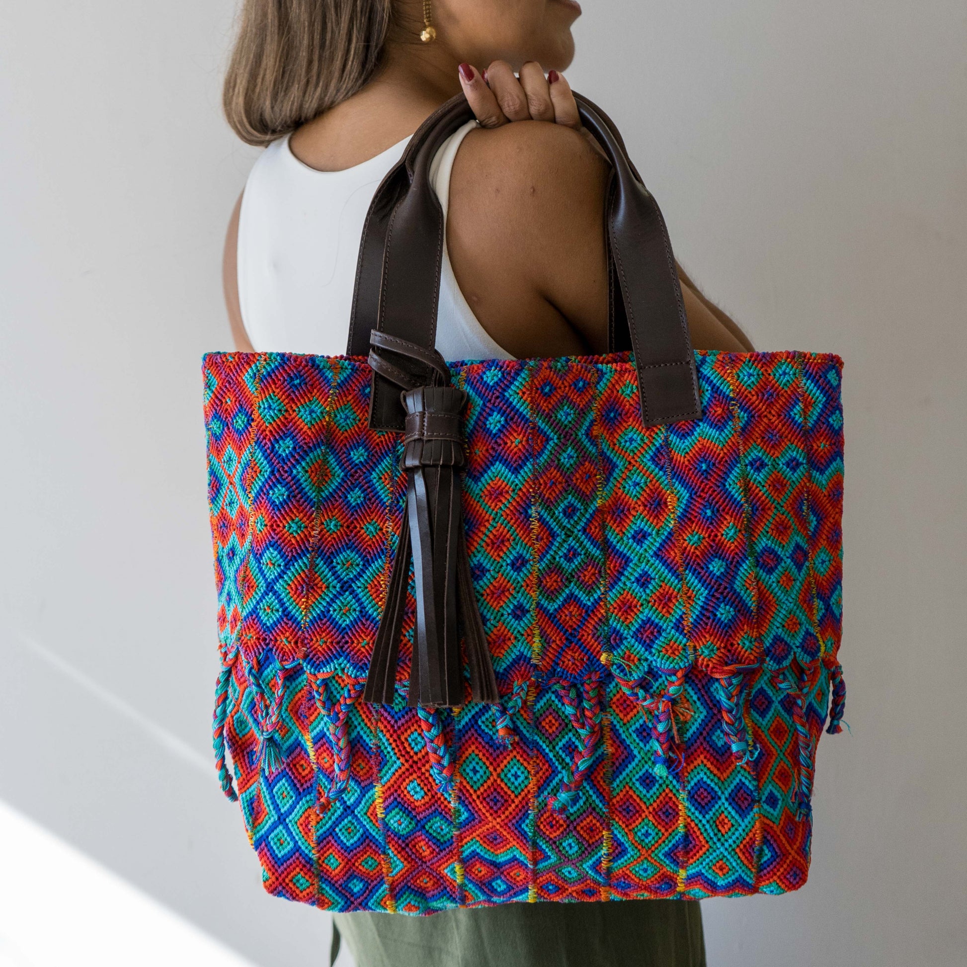 Each tote is meticulously created from handwoven macramé straps, made by skilled artisans in Chiapas. The intricate craftsmanship is complemented by high-quality leather, providing a durable and stylish accessory that carries the essence of tradition and the spirit of resilience.