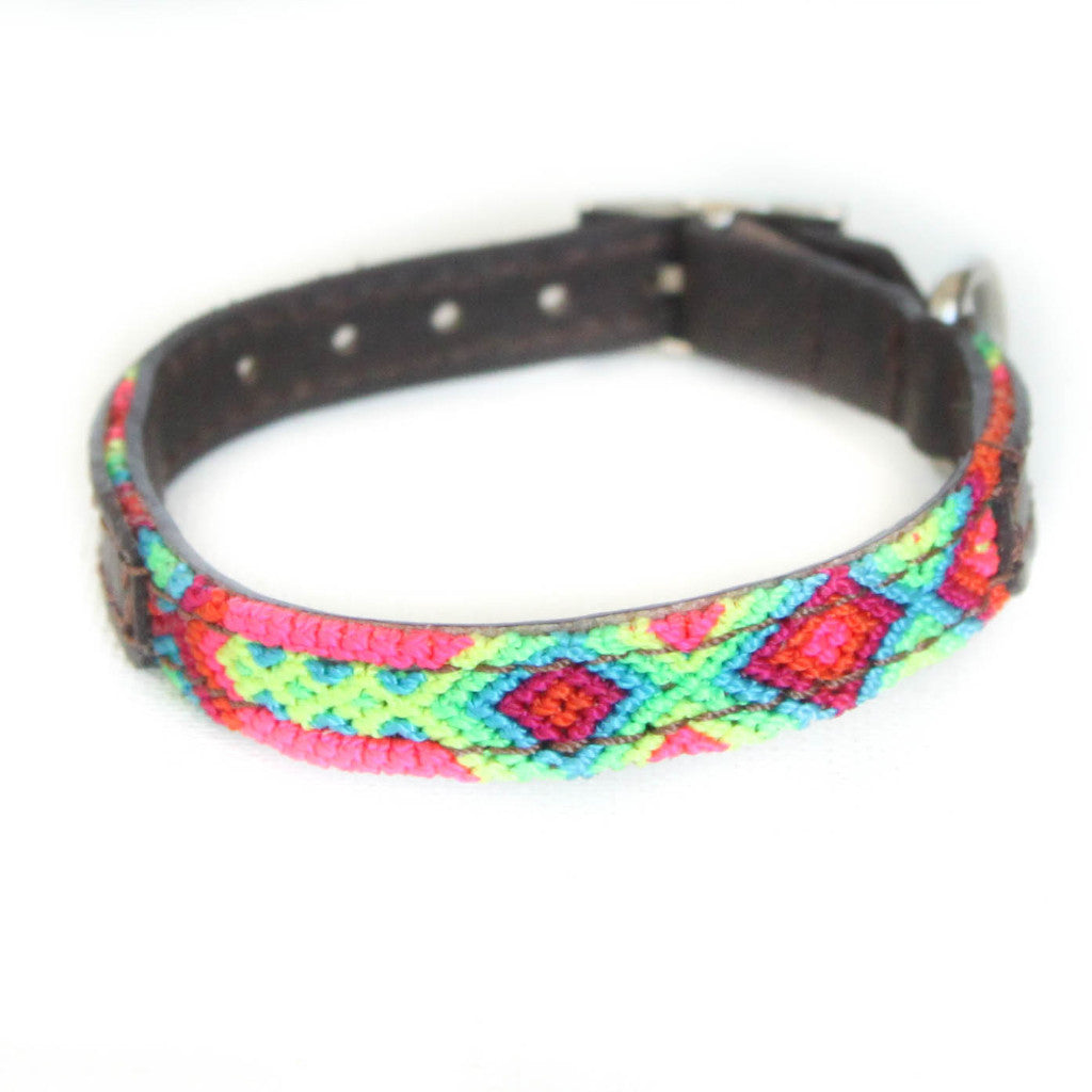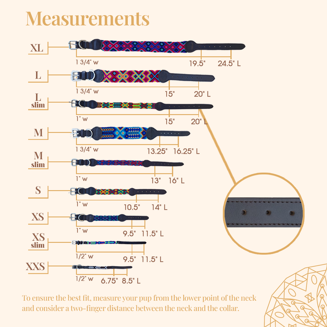 Our dog collars are crafted with exceptional care and pride by a Mexican Artisan repurposing traditional macrame belts and coupled with a high-quality soft leather backing.