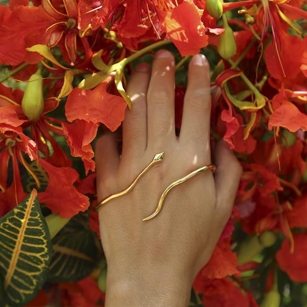 The Snake Palm-Cuff is an extraordinarily stylish piece to wear. Worn alone it is a one-of-a-kind statement of presence that surpasses traditional jewelry. It's comfortable, easily adjustable and very fun to wear. Your hand will take an eye-catching spotlight and accentuate any interaction with intrigue. The energy of being unique and feeling empowered will be perceivable by everyone.