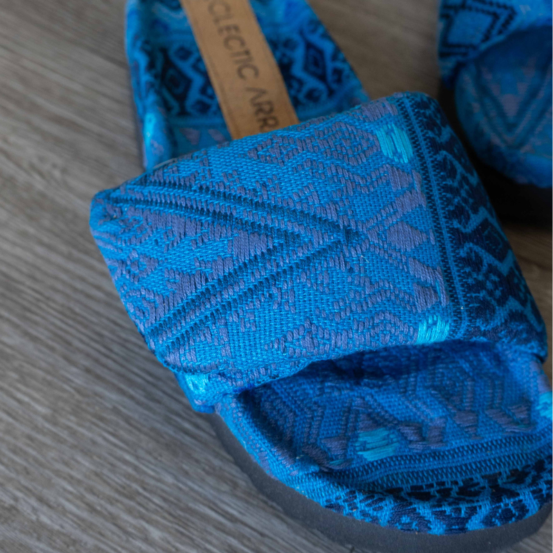 - Unique Handmade Fabric: The journey begins with our artisans, who spend nearly a week weaving the intricate fabric by hand on a backstrap loom. Each piece is a labor of love, ensuring no two sandals are alike.