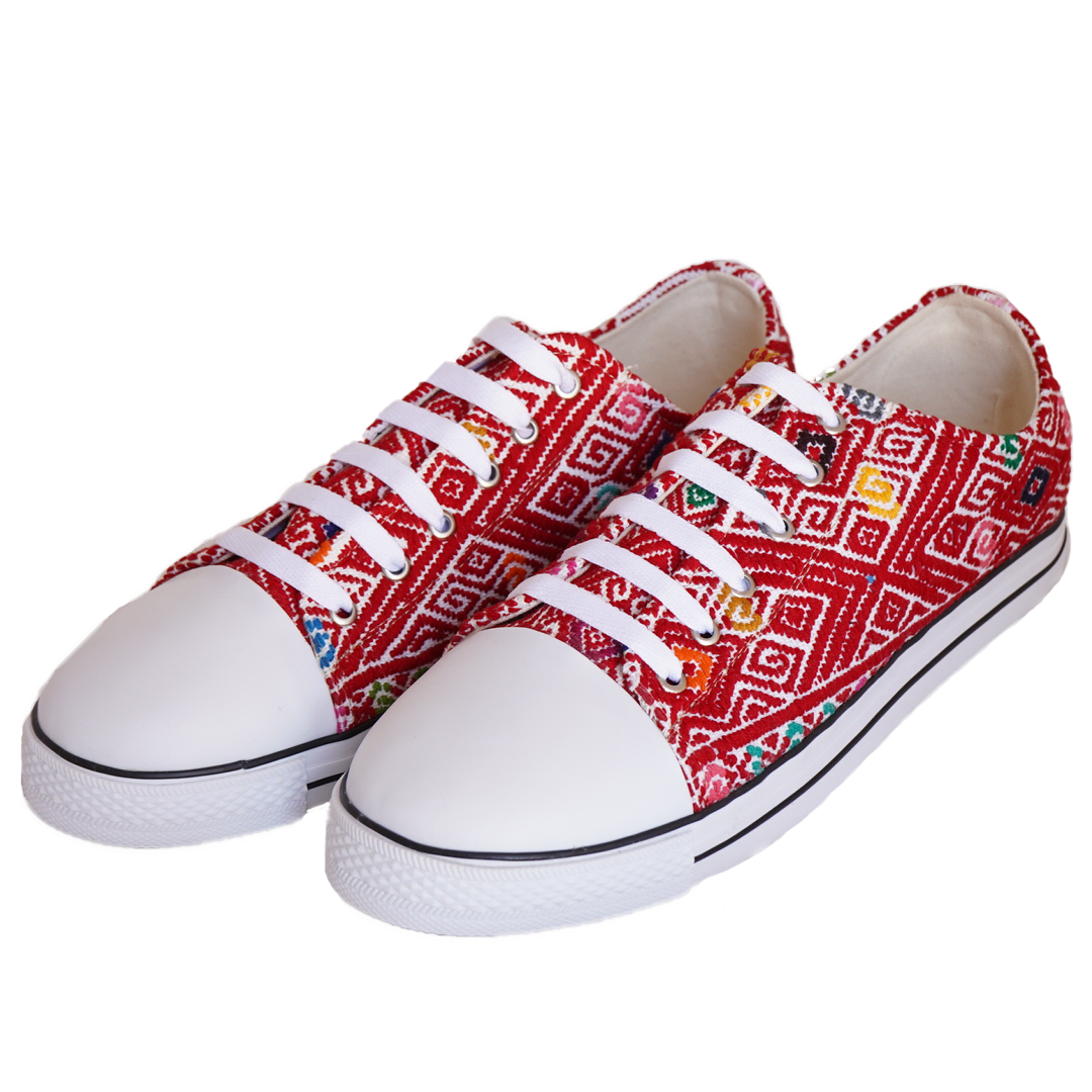 Who doesn't love a good pair of sneakers? We sure do, but what is even better, is a pair that has a fabric that was made by hand on a back strap loom by these incredibly talented women.