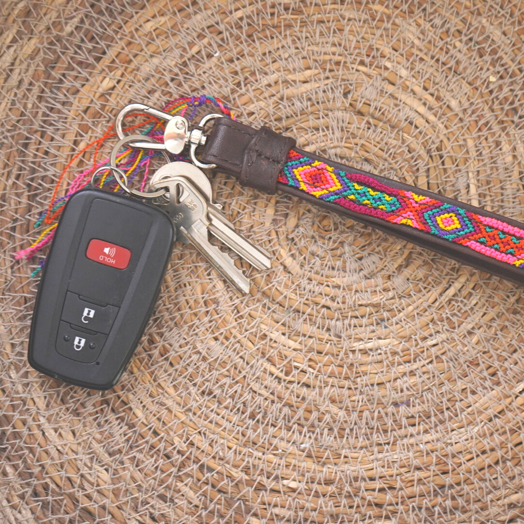 Have a unique and colorful leather and telar textile keychain to not lose your keys inside your bag or carry it as an extra colorful item outside the bag.