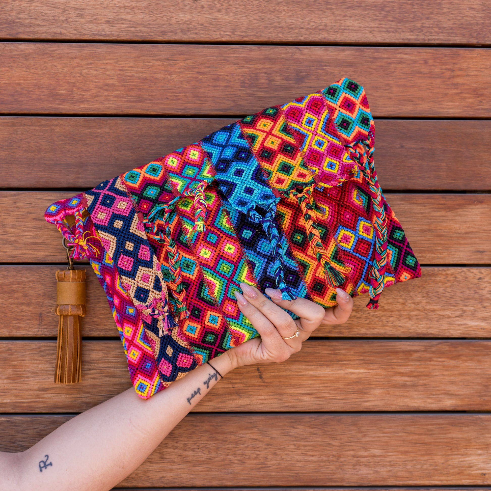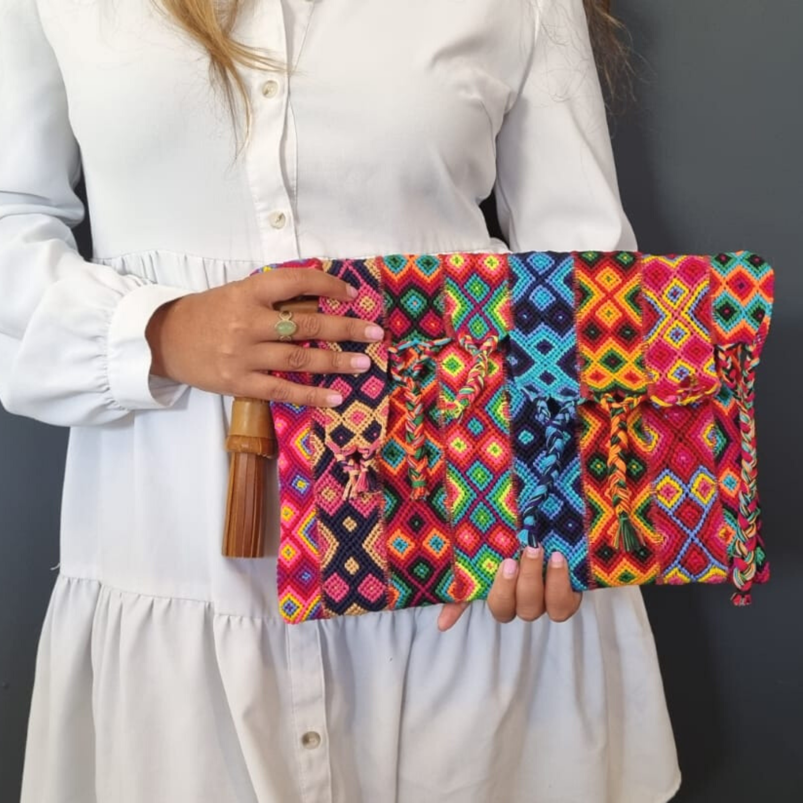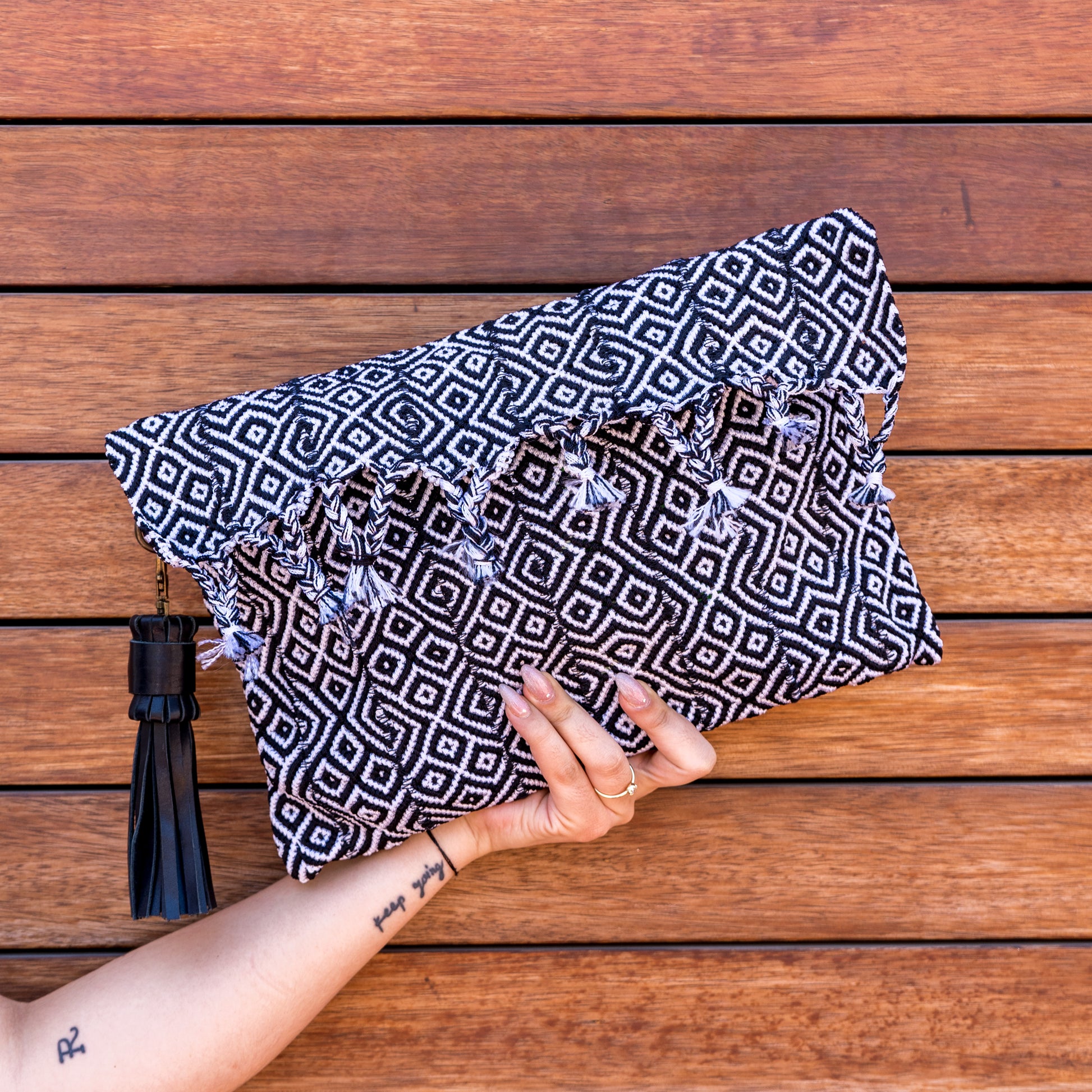 Limited edition clutch made from our beautiful handwoven straps and enhanced with fine leather details. These designs are the most authentic statement piece you can add to your clutch collection.