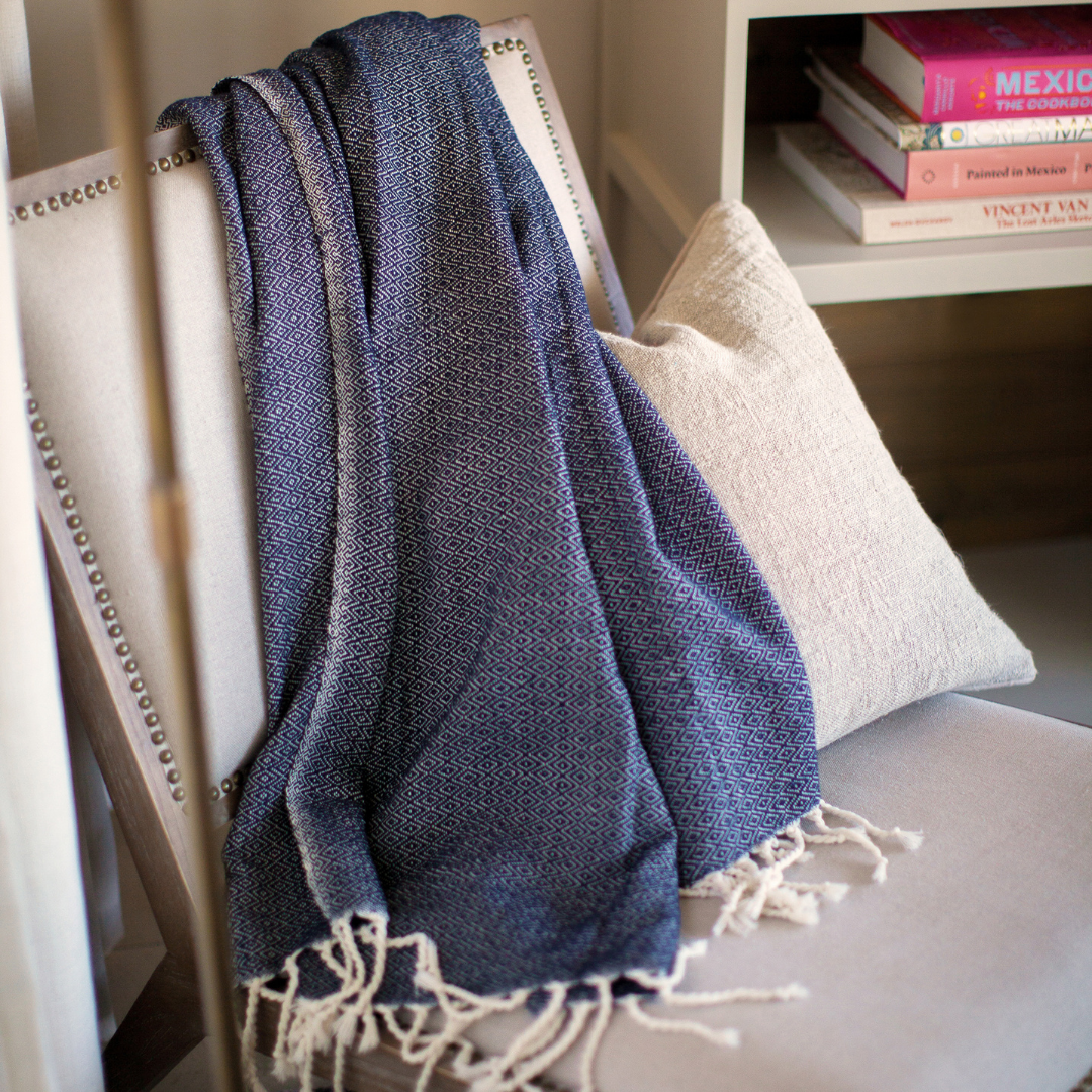 Wrap yourself in pure comfort with the Feliz Rhombus Turkish Throw—a thicker, softer, and cozier take on traditional handwoven textiles. Crafted with a unique threading technique on a pedal loom by Rodrigo and his artisan cooperative in Oaxaca, this throw offers the perfect balance of warmth and breathability. Whether you're curling up at home, layering it over your bedding, or taking it along for a breezy beach day, its luxurious texture and timeless design make it a staple for every season.
