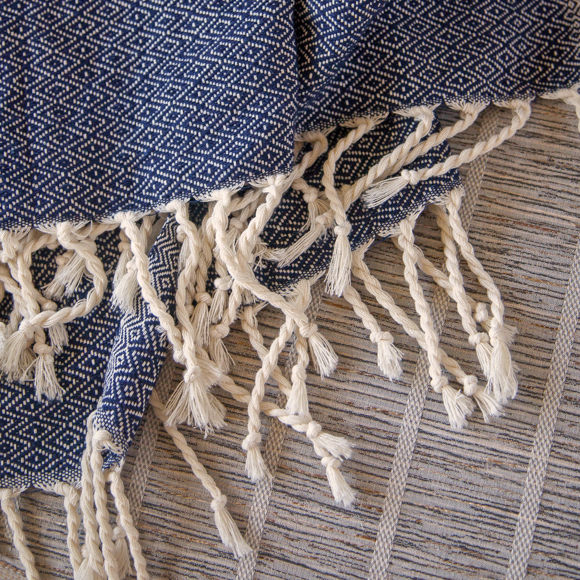 Wrap yourself in pure comfort with the Feliz Rhombus Turkish Throw—a thicker, softer, and cozier take on traditional handwoven textiles. Crafted with a unique threading technique on a pedal loom by Rodrigo and his artisan cooperative in Oaxaca, this throw offers the perfect balance of warmth and breathability. Whether you're curling up at home, layering it over your bedding, or taking it along for a breezy beach day, its luxurious texture and timeless design make it a staple for every season.
