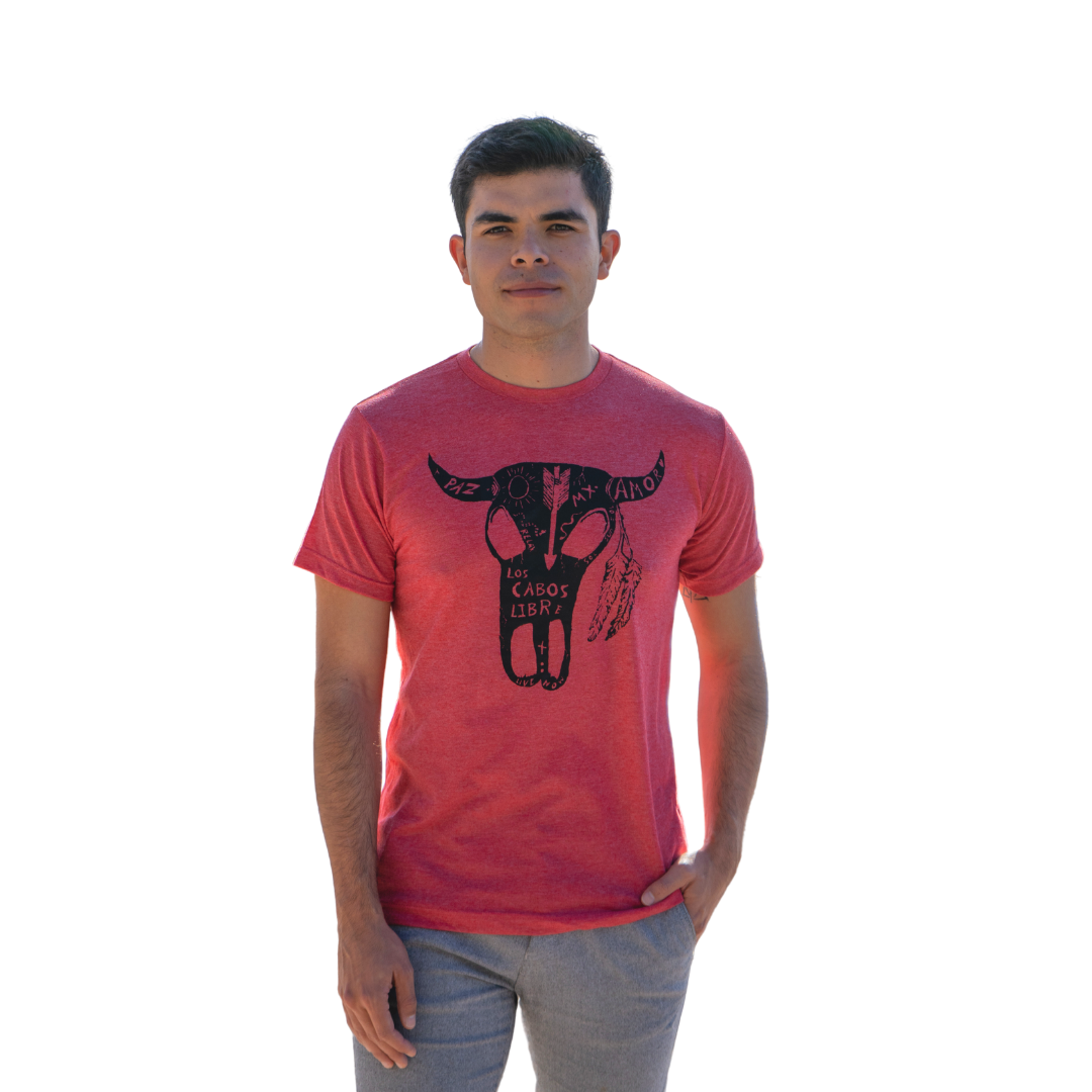 Unique and fun T-shirt with teh traditional cow skull representing with this print Mexico in a joyful way.
