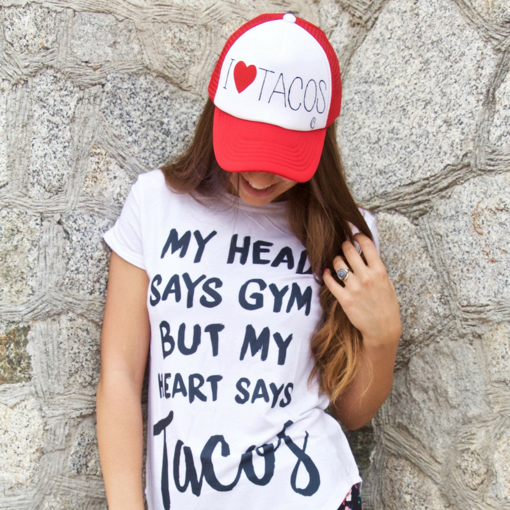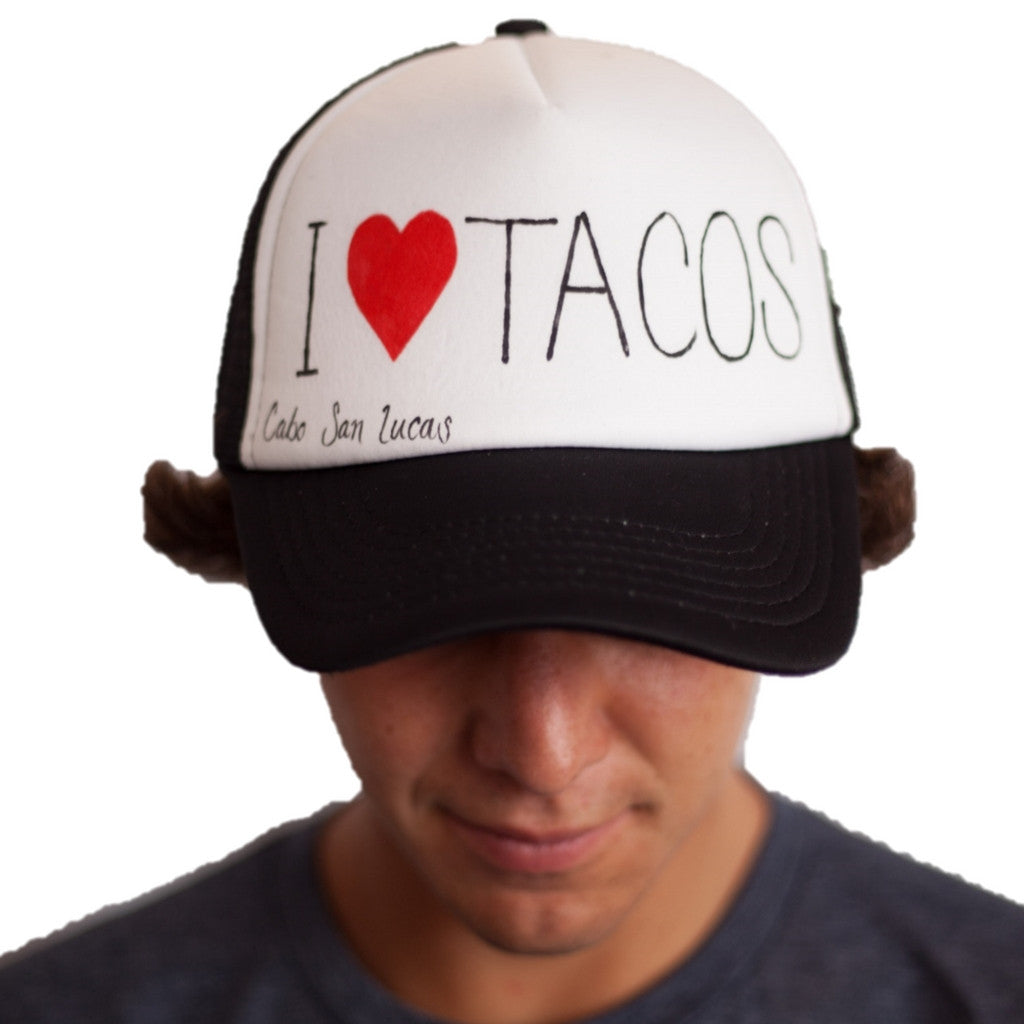 Talk about a fun frase for this summer. The “I <3 Tacos” baseball hat must be in your closet!