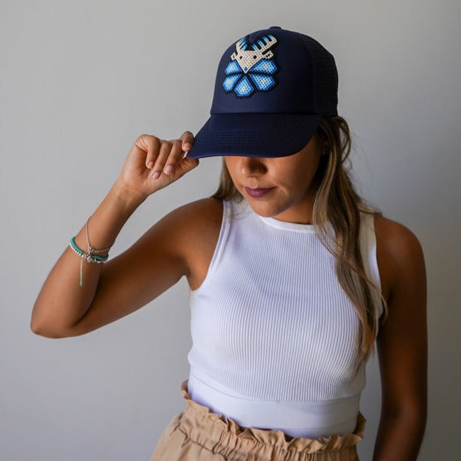 Beautiful baseball hats with Huichol motifs, an original Mexican touch in a light easy wear hat.
