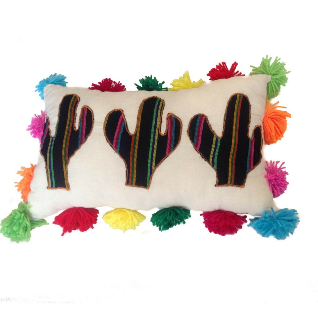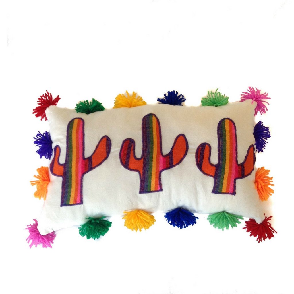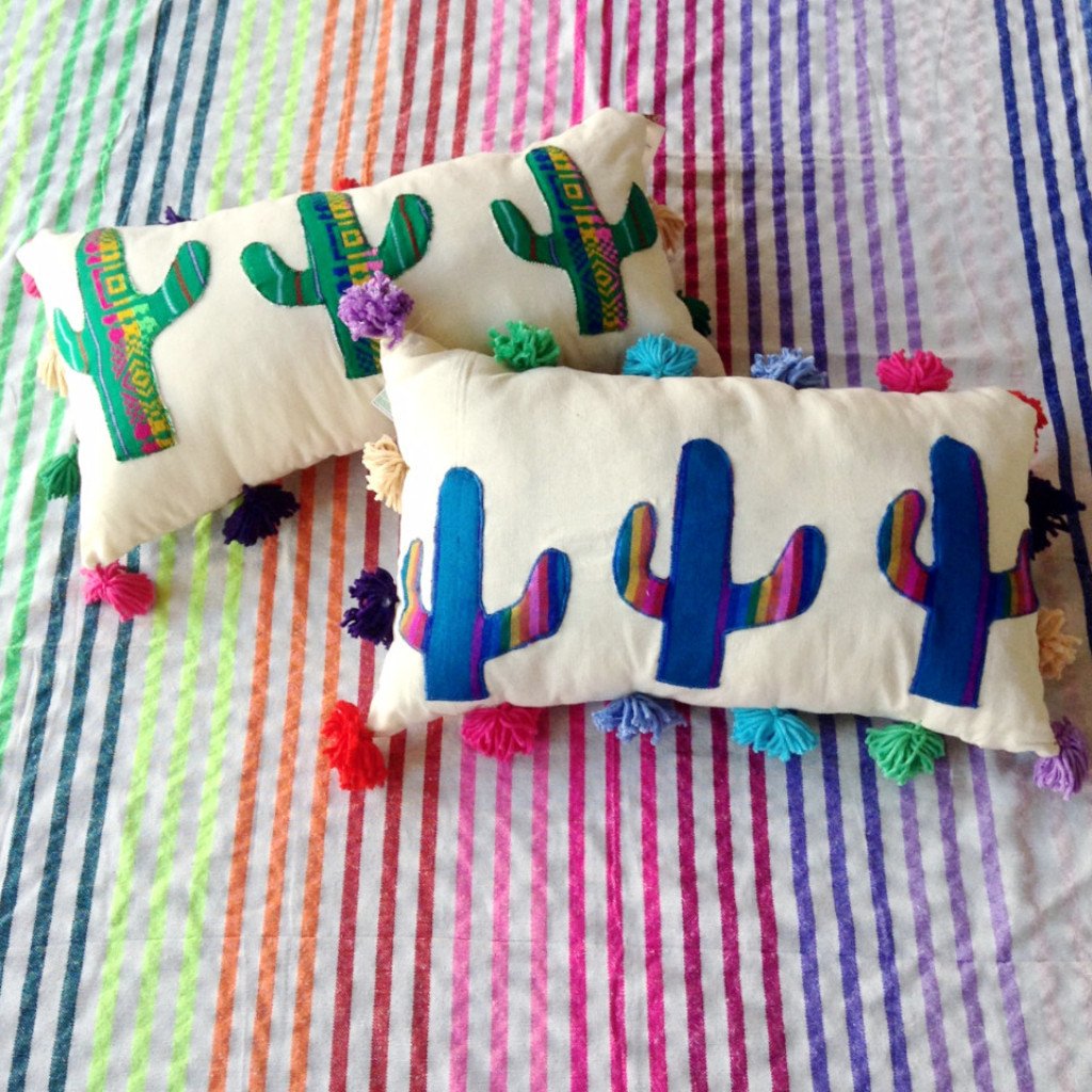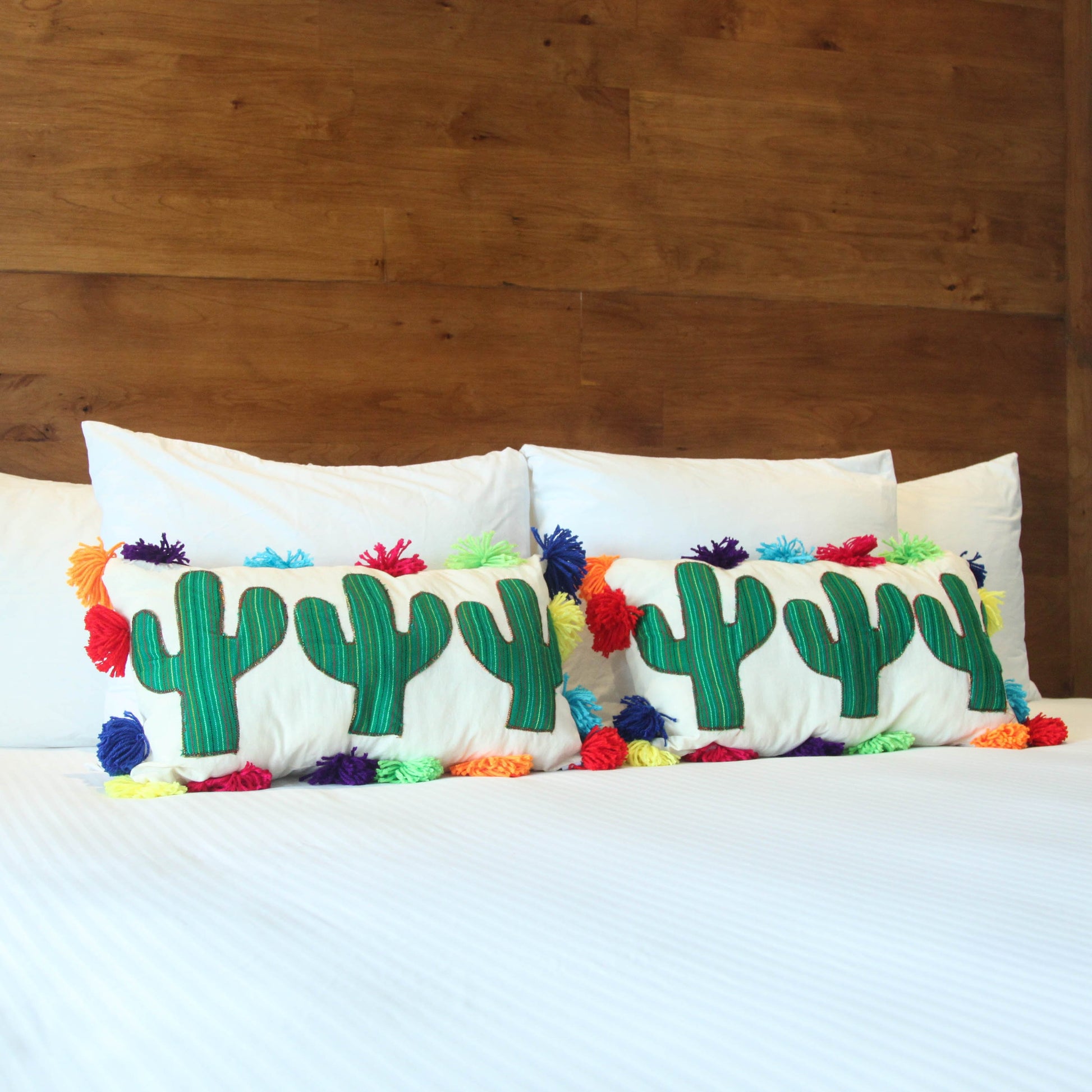 These fun cactus pillow cases add a fun touch to any room, trimmed in brightly colored pom poms.