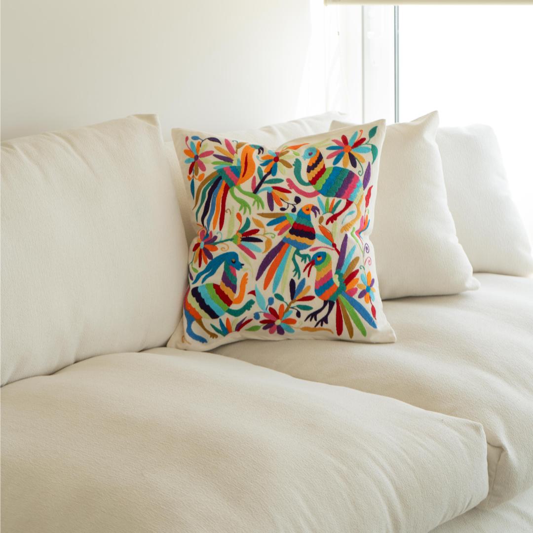 This extraordinary pillowcase is an unequaled addition to your bed or living room decor. Adds an artistic bright touch to any room. 100% hand-embroidered in Mexico in cotton.