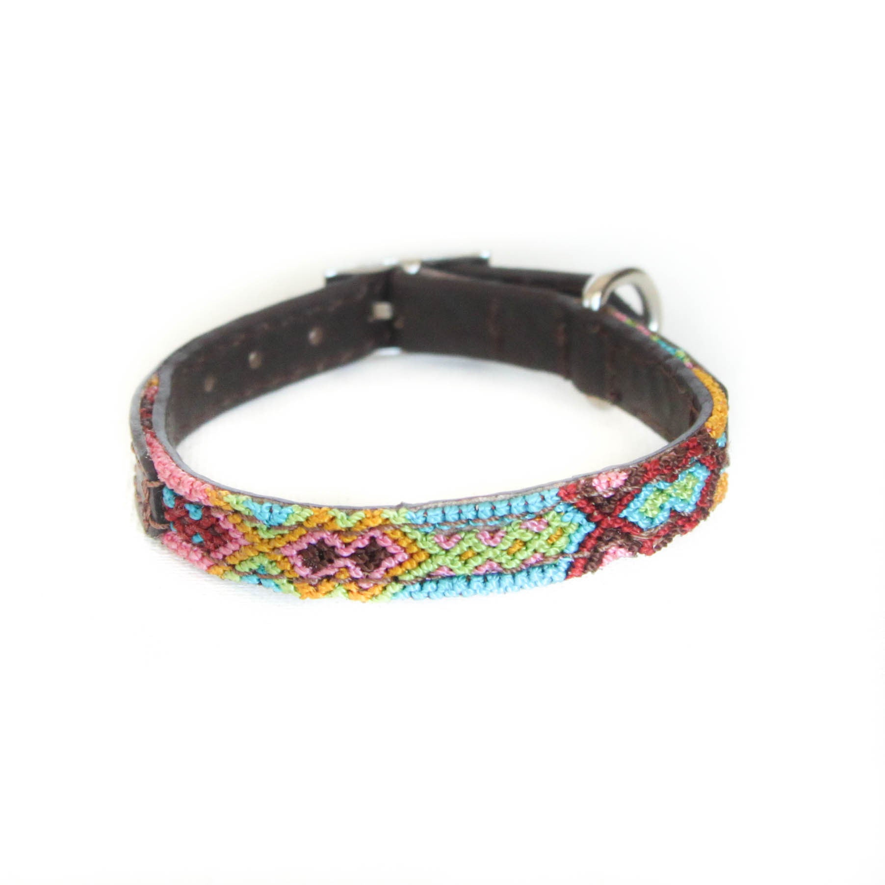 Our dog collars are crafted with exceptional care and pride by a Mexican Artisan repurposing traditional macrame belts and coupled with a high-quality soft leather backing.