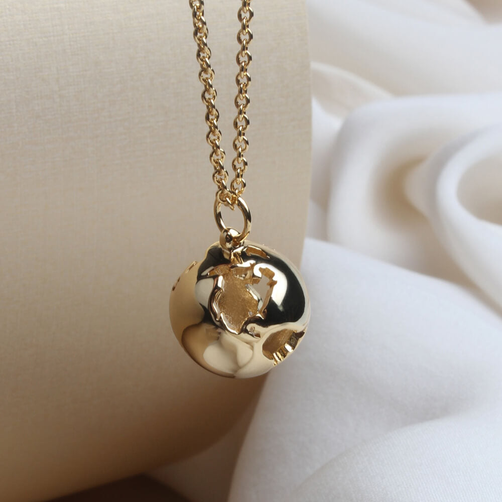 Dainty yet bold, the world globe necklace features an intricate design that illustrates all the countries of the world. A constant reminder to always keep exploring